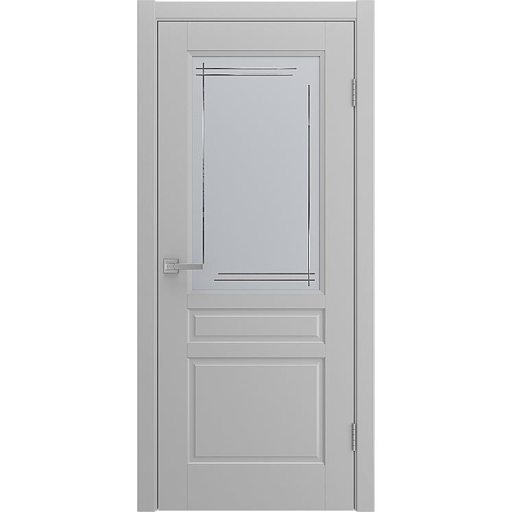 Дверь межкомнатная "BELLI" Светло-серая эмаль остекление сатинат гравировка матовая в Москве
