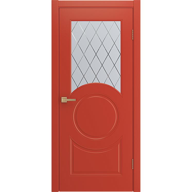 Дверь межкомнатная “DONNA” Красный эмаль остекление сатинат гравировка ромб