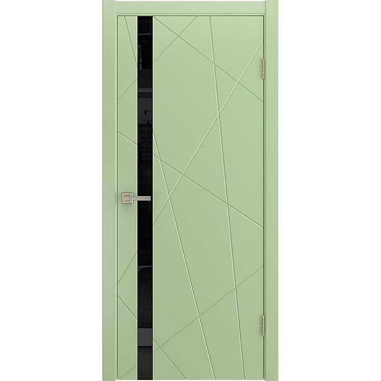 Дверь межкомнатная “FIESTA” Фисташка эмаль остекление лакобель черное стекло