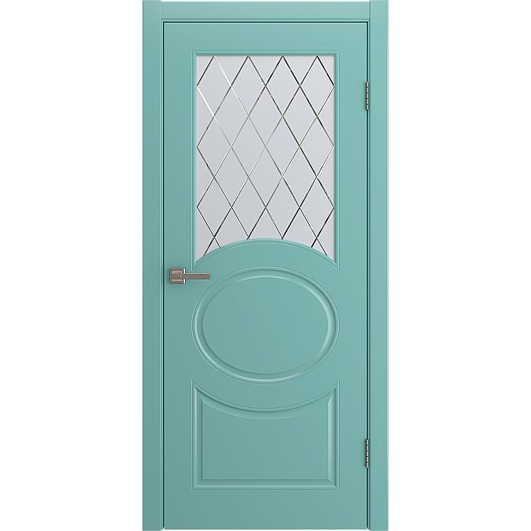 Дверь межкомнатная “OLIVIA” Небесно-голубой эмаль остекление сатинат гравировка ромб