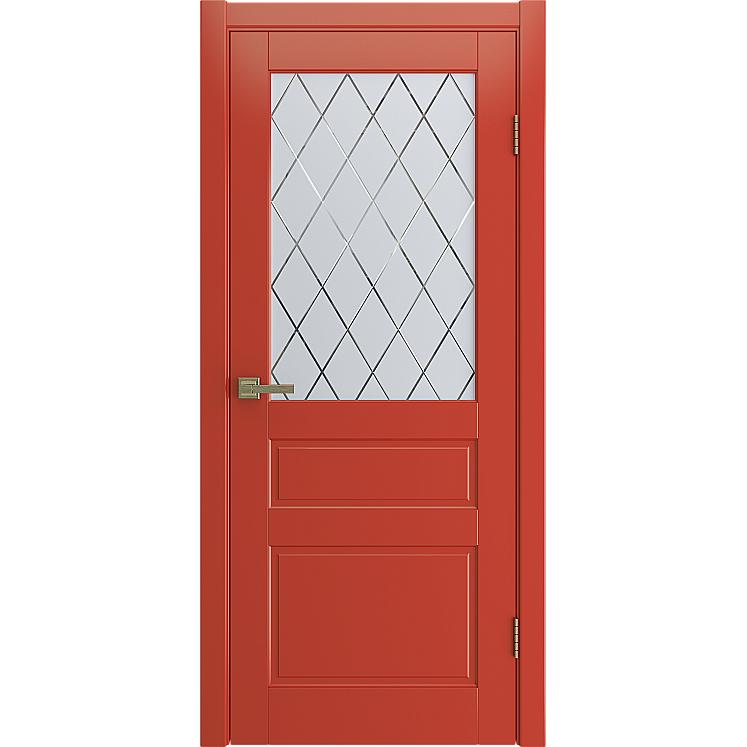 Дверь межкомнатная “STELLA” Красный эмаль остекление сатинат гравировка ромб