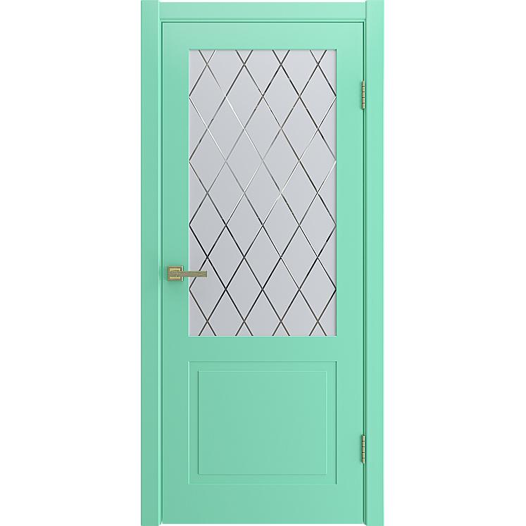 Дверь межкомнатная “VERONA” Бирюза эмаль остекление сатинат гравировка ромб