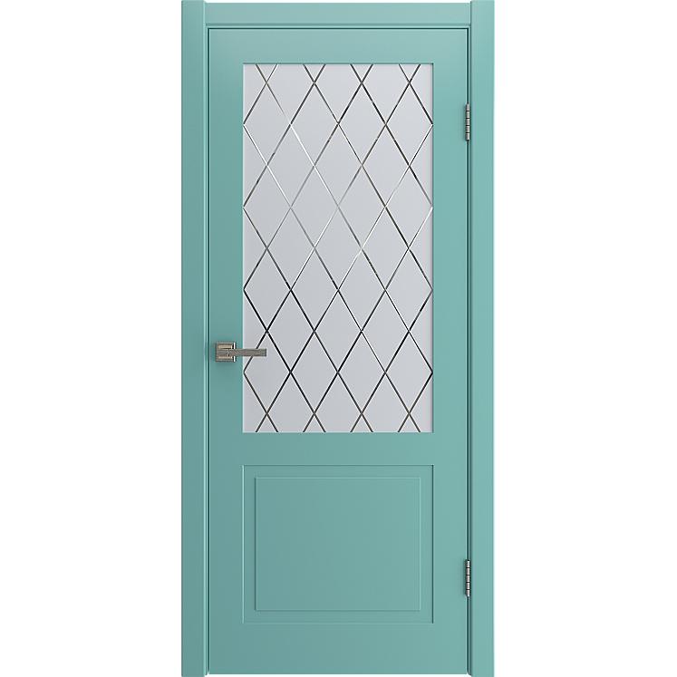 Дверь межкомнатная “VERONA” Небесно-голубой эмаль остекление сатинат гравировка ромб