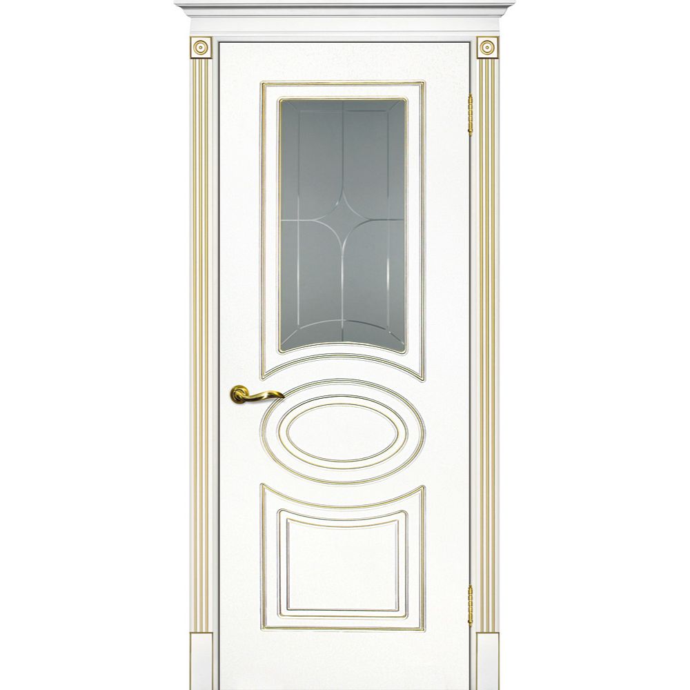 Двери крашеные (Эмаль) ТЕКОНА Смальта 03 со стеклом Белый ral 9003 патина золото