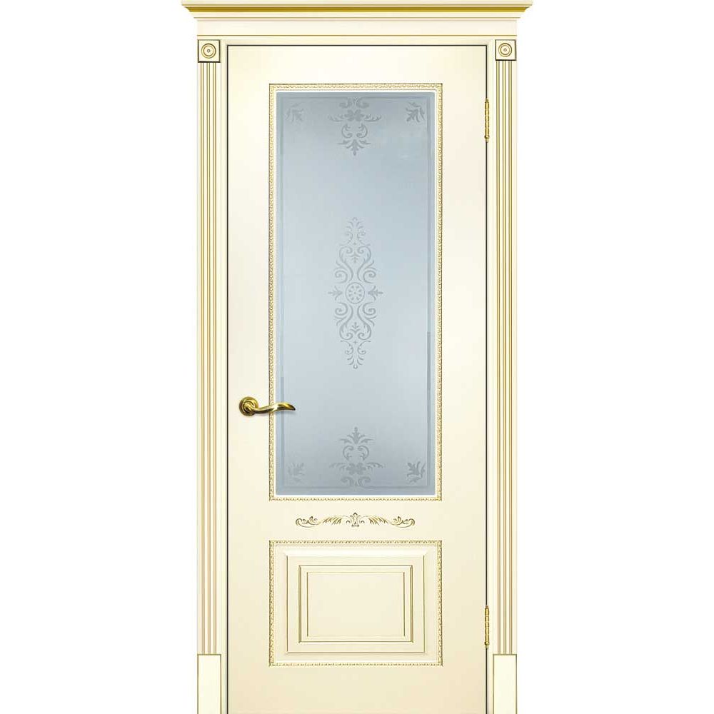 Двери крашеные (Эмаль) ТЕКОНА Смальта 04 со стеклом Слоновая кость ral 1013 патина золото в Москве