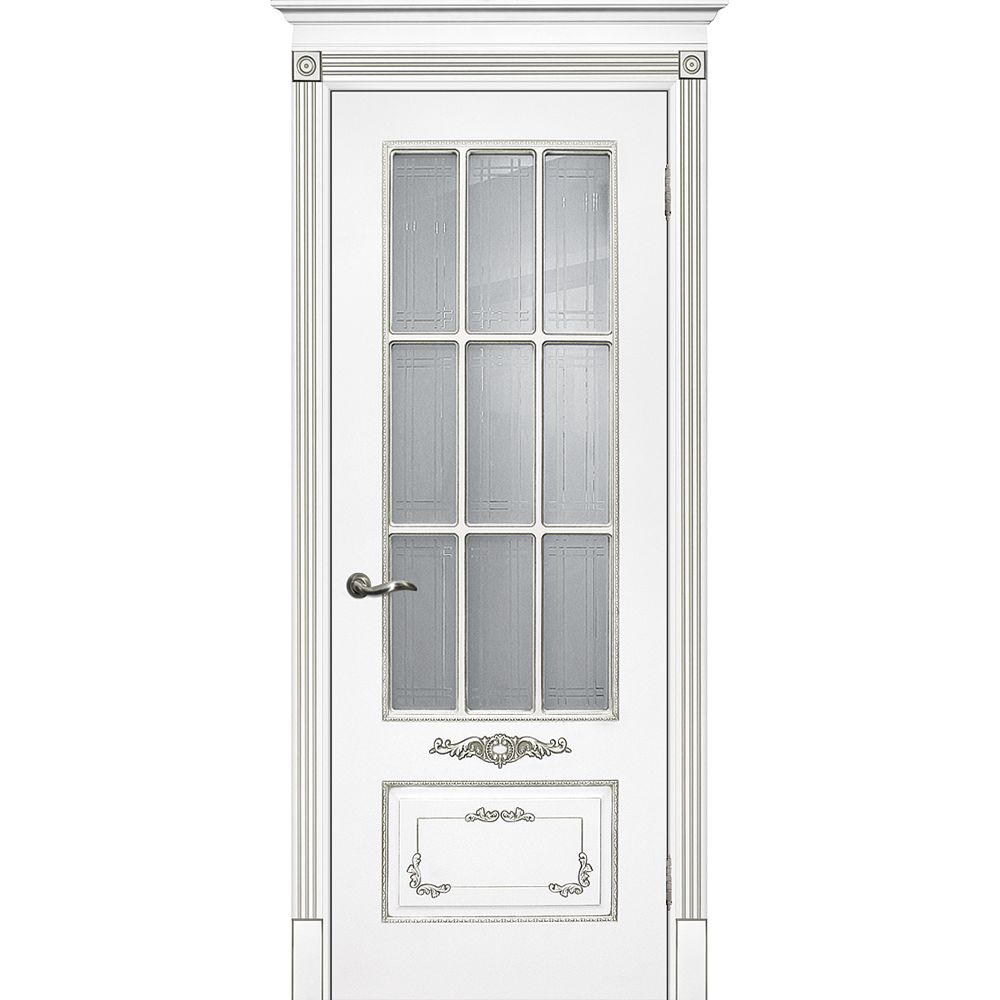 Двери крашеные (Эмаль) ТЕКОНА Смальта 09 со стеклом Белый ral 9003 патина серебро