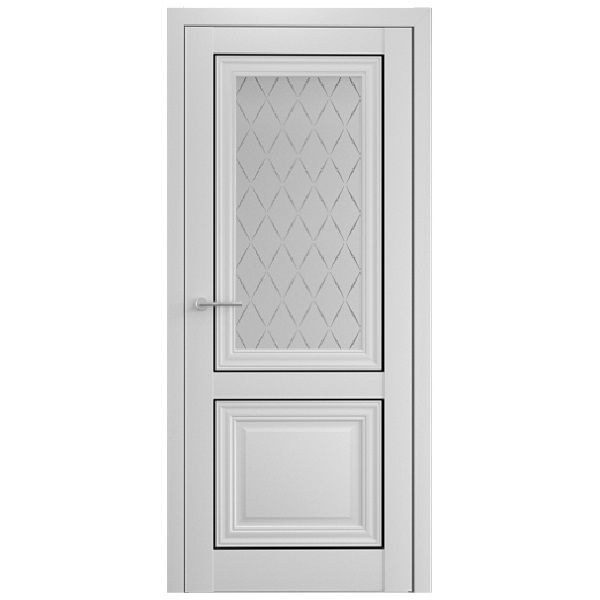 Остекленная версия включает вставку из матового стекла с дизайнерским узором “Лорд серый”. Рисунок в форме ромба выполнен серым цветом.