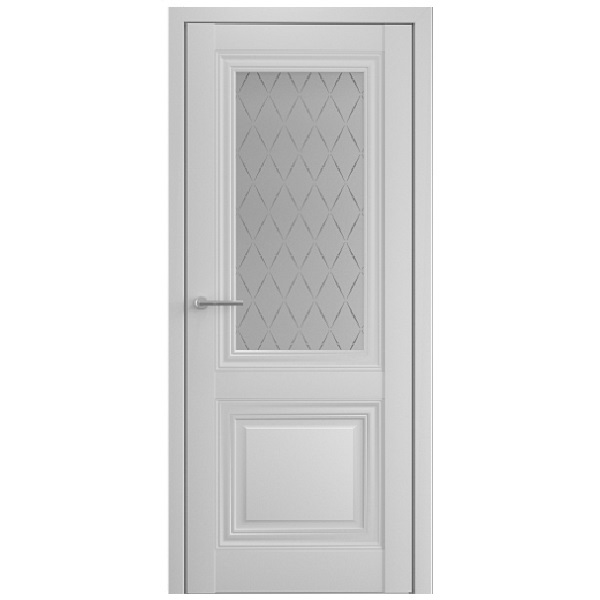 Остекленная версия модели включает вставку из матового стекла с дизайнерским узором “Лорд серый”. Узор в форме ромба выполнен серым цветом.