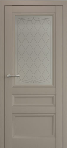 Остекленная версия представлена матовым стеклом с рисунком “Титул серый”. Уникальный узор с вензелями выполнен в сером цвете.