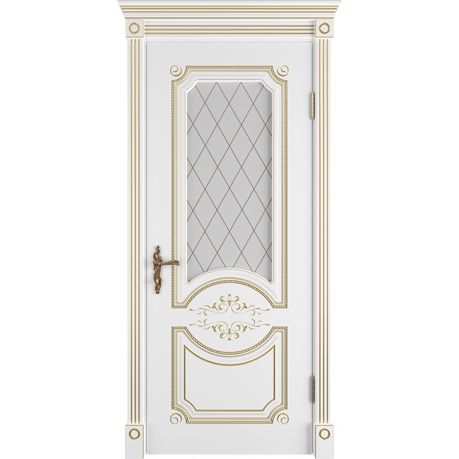Межкомнатная дверь Милана остекленная белая эмаль патина золото Владимирская фабрика дверей