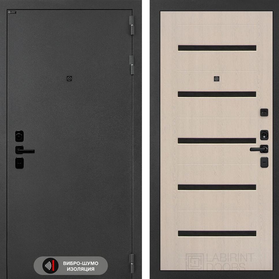 Входная дверь Соналаб 01 - Беленый дуб, стекло черное Лабиринт в Москве