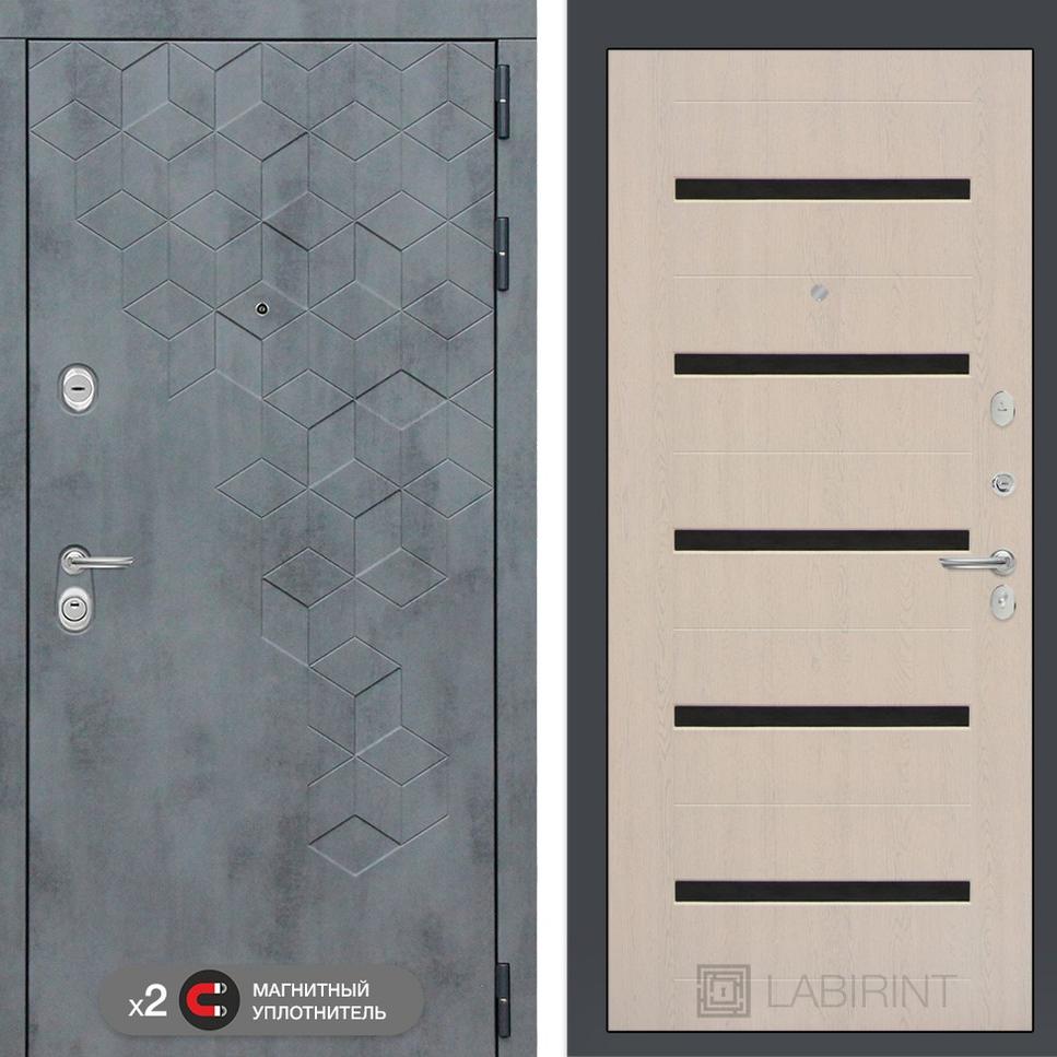 Входная дверь Бетон 01 - Беленый дуб, стекло черное Лабиринт в Москве