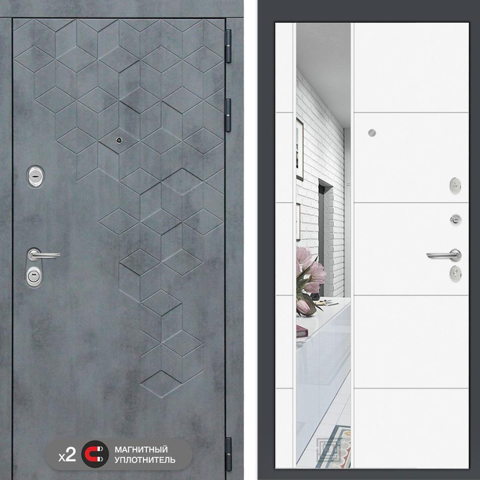 Входная дверь Бетон с зеркалом 19 – Белый софт Лабиринт