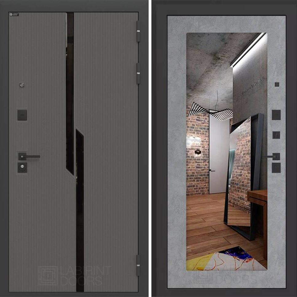 Входная дверь Карбон с Зеркалом 18 – Бетон светлый