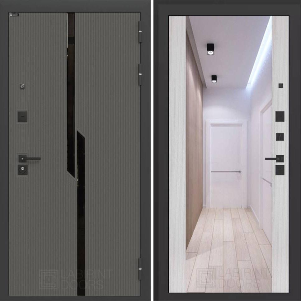 Входная дверь Карбон с зеркалом Максимум – Сандал белый