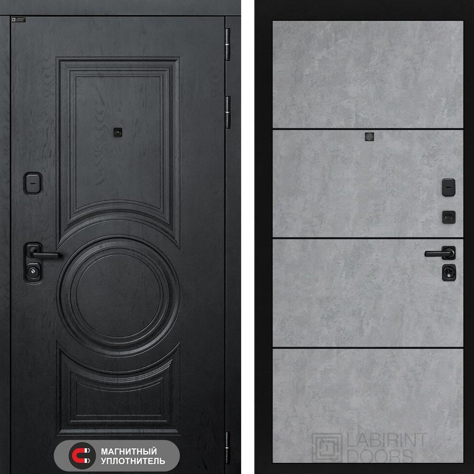 Входная дверь Гранд 25 – Бетон светлый, черный молдинг Лабиринт